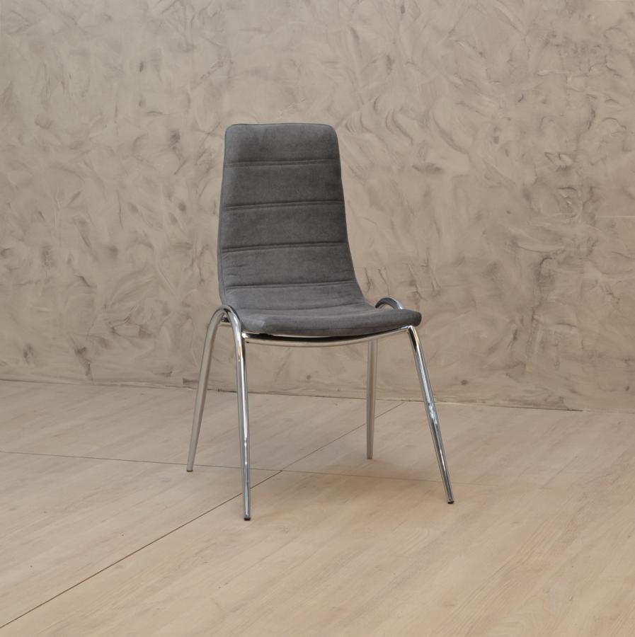 Καρέκλα μοντέρνα και αναπαυτική με τοξωτά μεταλλικά ίνοξ πόδια.